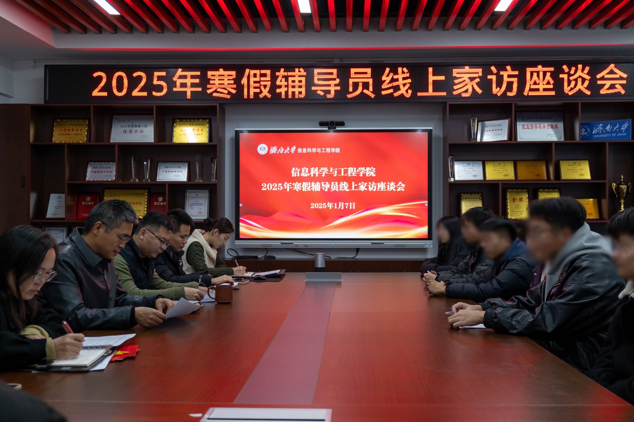在12教704召开了2025年寒假家访座谈会,通过腾讯会议、视频电话等方式与多名省外重点资助学生及家长进行线上交流,为受助学生家庭送去温暖和祝福。学院党政领导班子成员、全体学工人员、班主任代表以及部分学生及家长代表参与此次会议,会议由学院党委副书记、副院长郝伟主持。