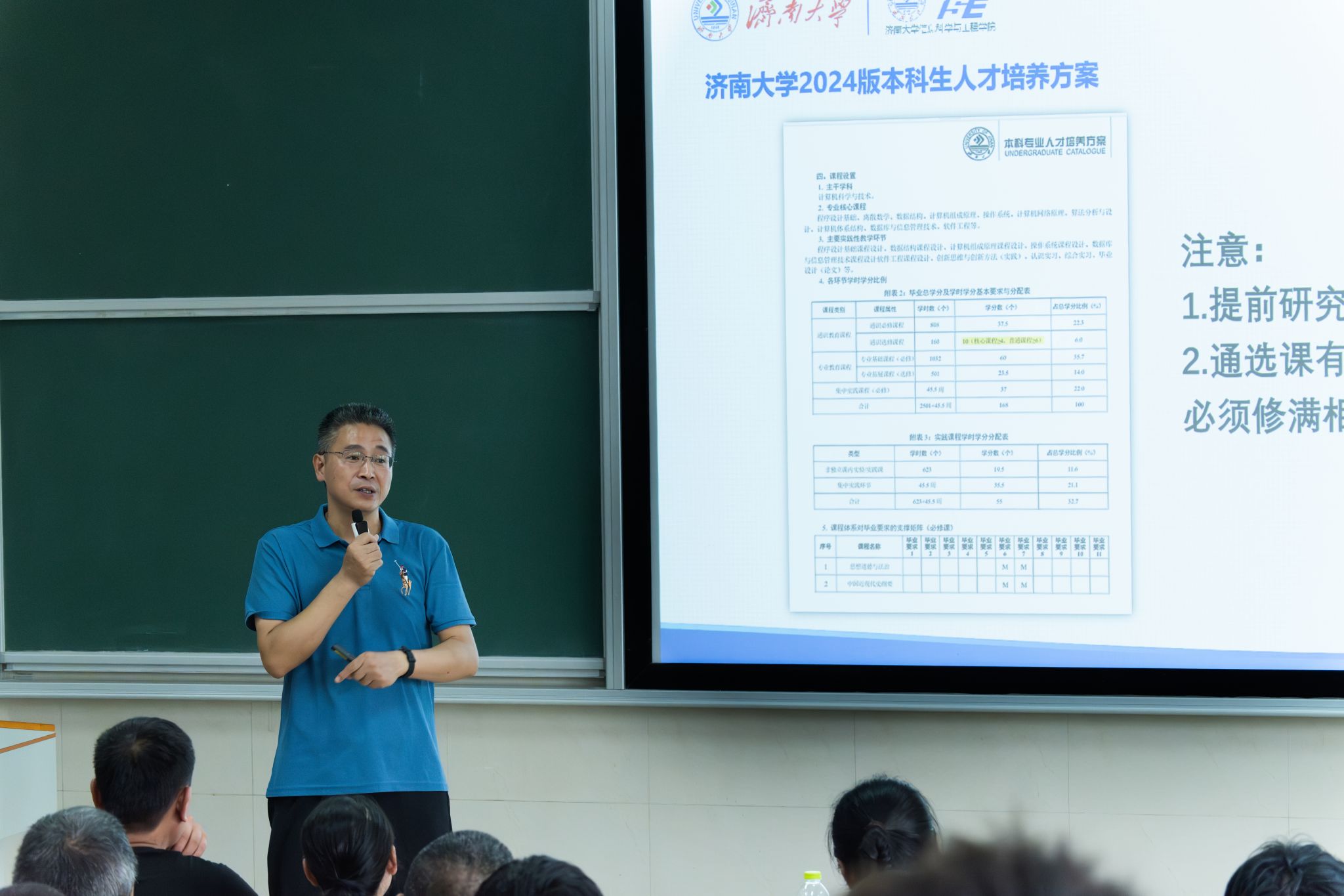 下午三点,家长见面会在11教学楼举行,学院领导、辅导员、班主任老师和学生家长欢聚一堂。会议伊始,夏卫东代表学院全体师生对各位新生家长的到来表示热烈欢迎,对家长们将孩子送入信息学院培养表示衷心感谢。他结合学院的发展历程、学科特色、师资力量及近年来在教学科研、人才培养等方面取得的成果进行了详细介绍,让家长们全面了解学院的办学实力与育人理念,消除家长对孩子大学学习环境的顾虑。此次家长见面会圆满落幕,不仅搭建了学院与家长之间高效沟通的平台,更形成教育合力,通过学校与家庭的协同配合,为学生创造更优质、连贯的成长环境。