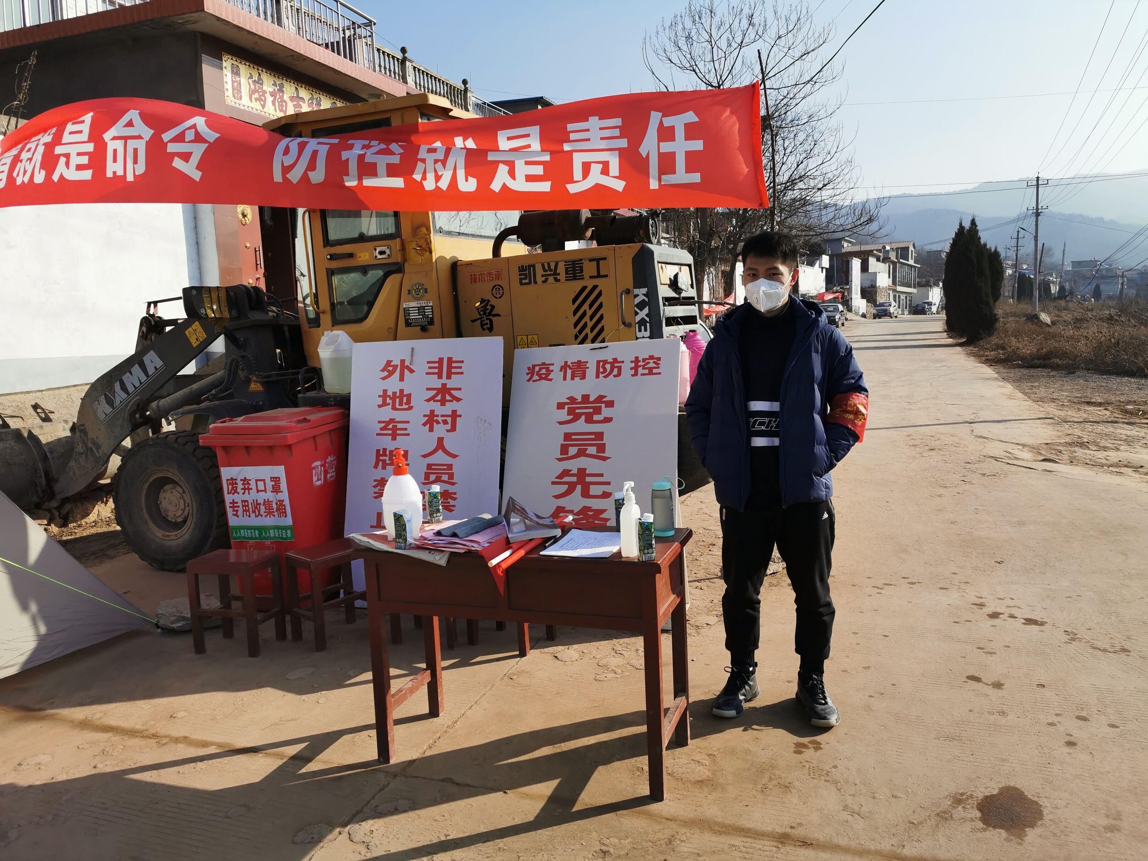 返乡大学生网合19W2班王泽鹏为当地疫情防控工作作出的贡献,赞扬他在防疫一线勇于担当、勇于作为的奉献精神。