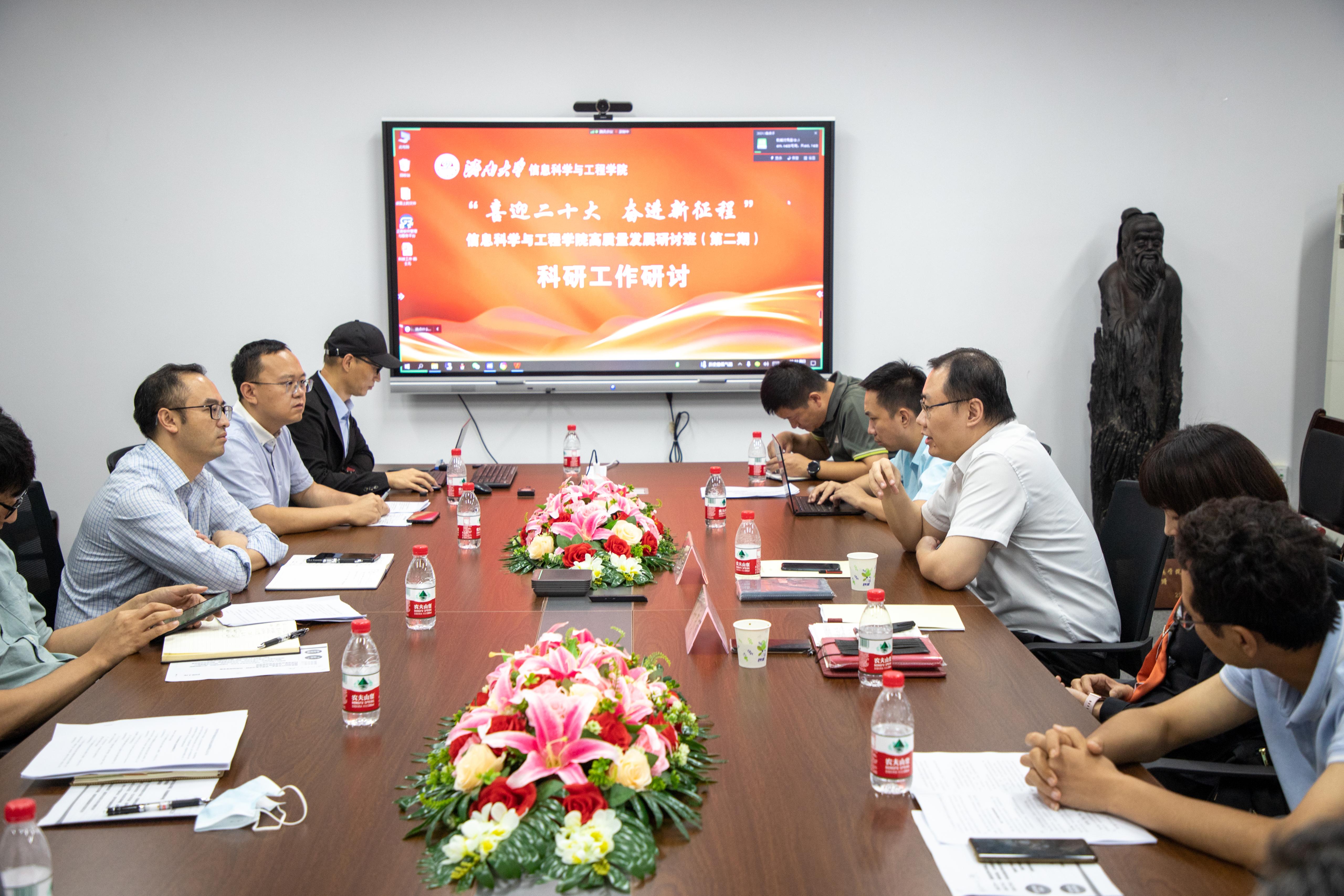 8月28日下午,在科研工作专题研讨中,黄加栋出席并讲话。他指出,学院要坚持“四个面向”,认真研究国家和地方发展规划和科研政策,以“有组织的科研”为指导思想加强科技工作统筹规划,并从重大、重点科技项目申报、标志性成果奖申报、科技成果转化和社会服务等方面提出期望。山东省计算中心(国家超级计算济南中心)创新团队负责人、山东山科数字经济研究院有限公司创始人、山东省经济和信息化发展研究院副院长周鸣乐工程师以“产教融合发展模式探索与实践”为题作专题报告;色戒
