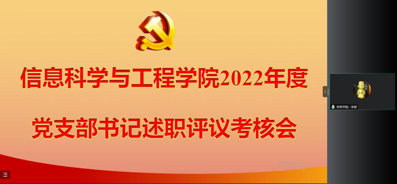 2022年度党支部书记履行全面从严治党责任和抓基层党建述职评议考核会以线上形式召开,学院党委委员、组织员、党支部书记、师生党员代表参加会议。会议由学院党委书记李超主持。