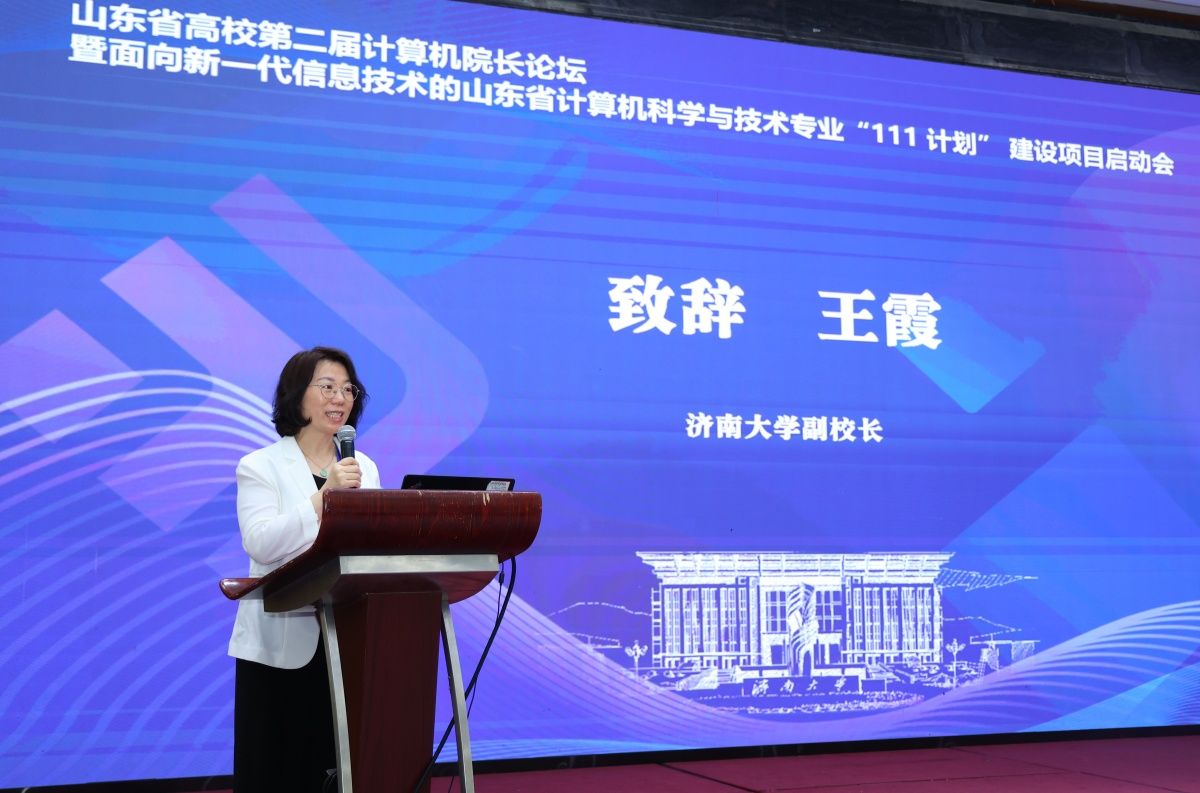 开幕式上,王霞向会议的召开表示热烈祝贺,向出席会议的各位领导、各位专家表示诚挚的欢迎。她指出,2023年底山东省教育厅启动了山东省普通本科高校重点领域教学改革试点项目立项建设工作,我校作为核心单位申报的3个项目全部获得立项,是全省获得立项最多的高校之一。此次面向新一代信息技术的山东省计算机科学与技术专业“111计划”建设项目的启动,为我校进一步深化计算机科学与技术专业的教学改革,提升人才培养质量带来了新的机遇和挑战。我校将以此次启动仪式为契机,同各位兄弟院校一起打造计算机科学与技术专业高质量发展共同体,为山东乃至全国信息科技事业的发展贡献更大力量。