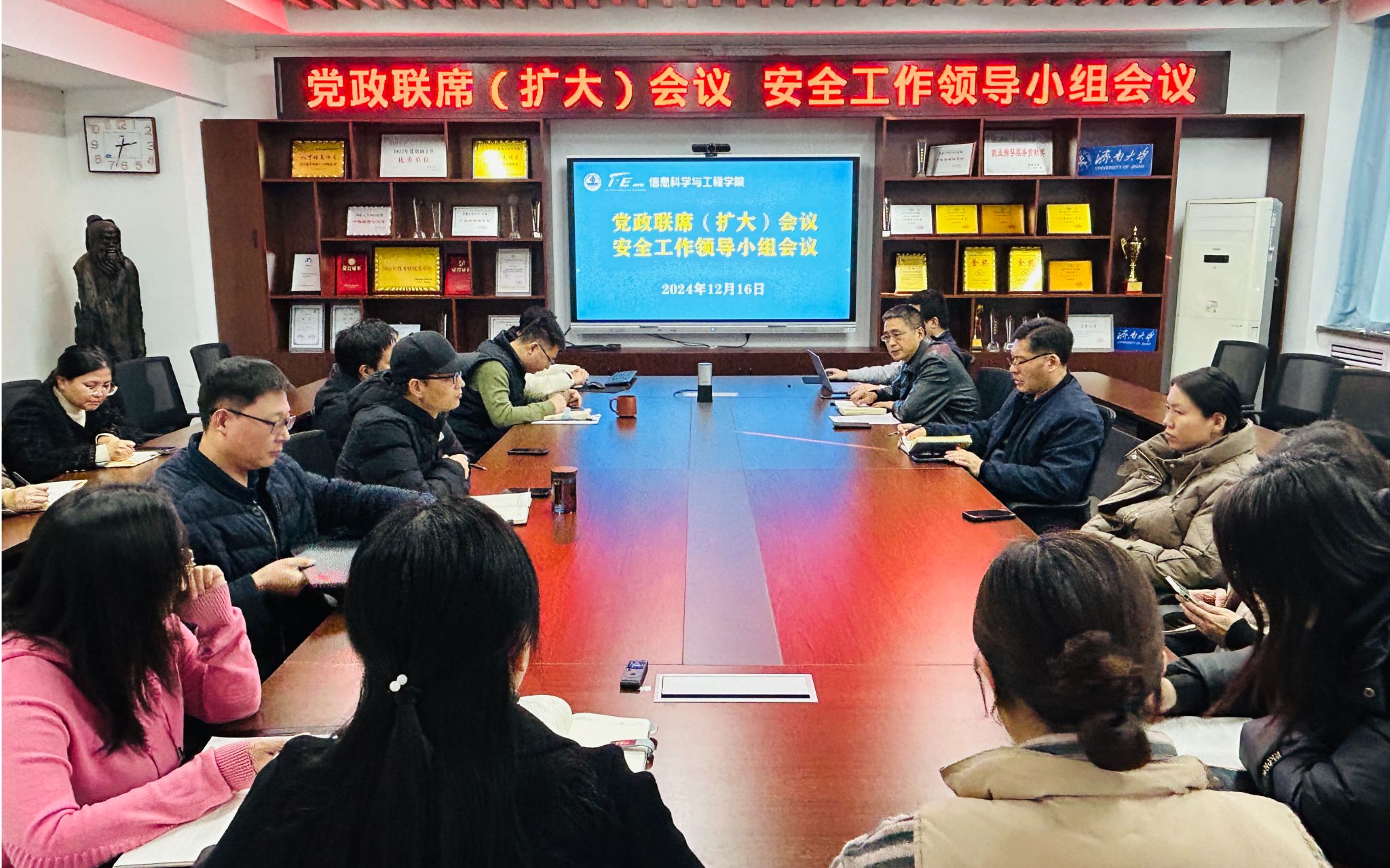 召开党政联席(扩大)会议暨安全工作领导小组会议,部署安全稳定工作。学院领导班子成员、各系主任、科研平台负责人、科级干部、各实验室、机房负责人以及全体学工人员参加会议。