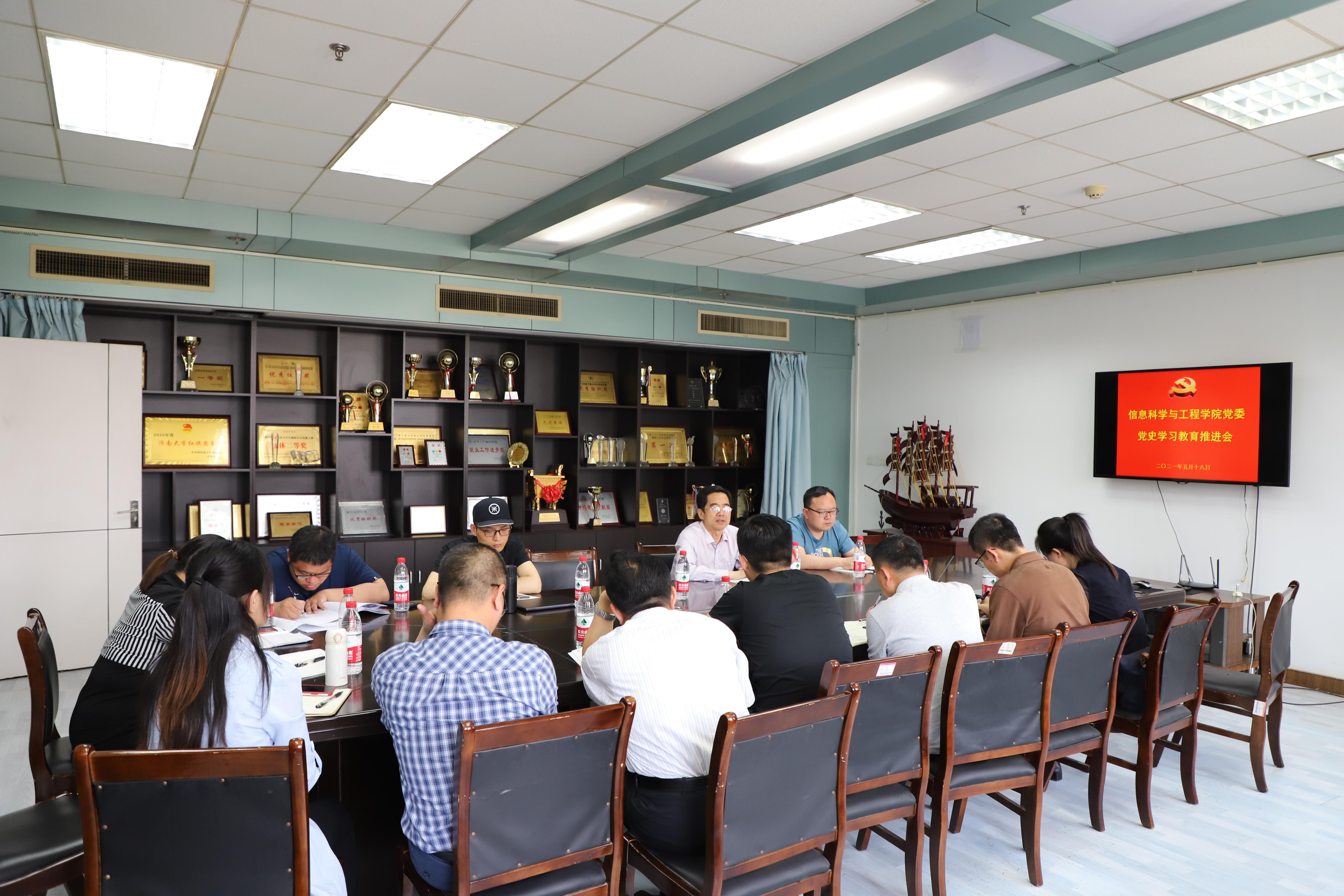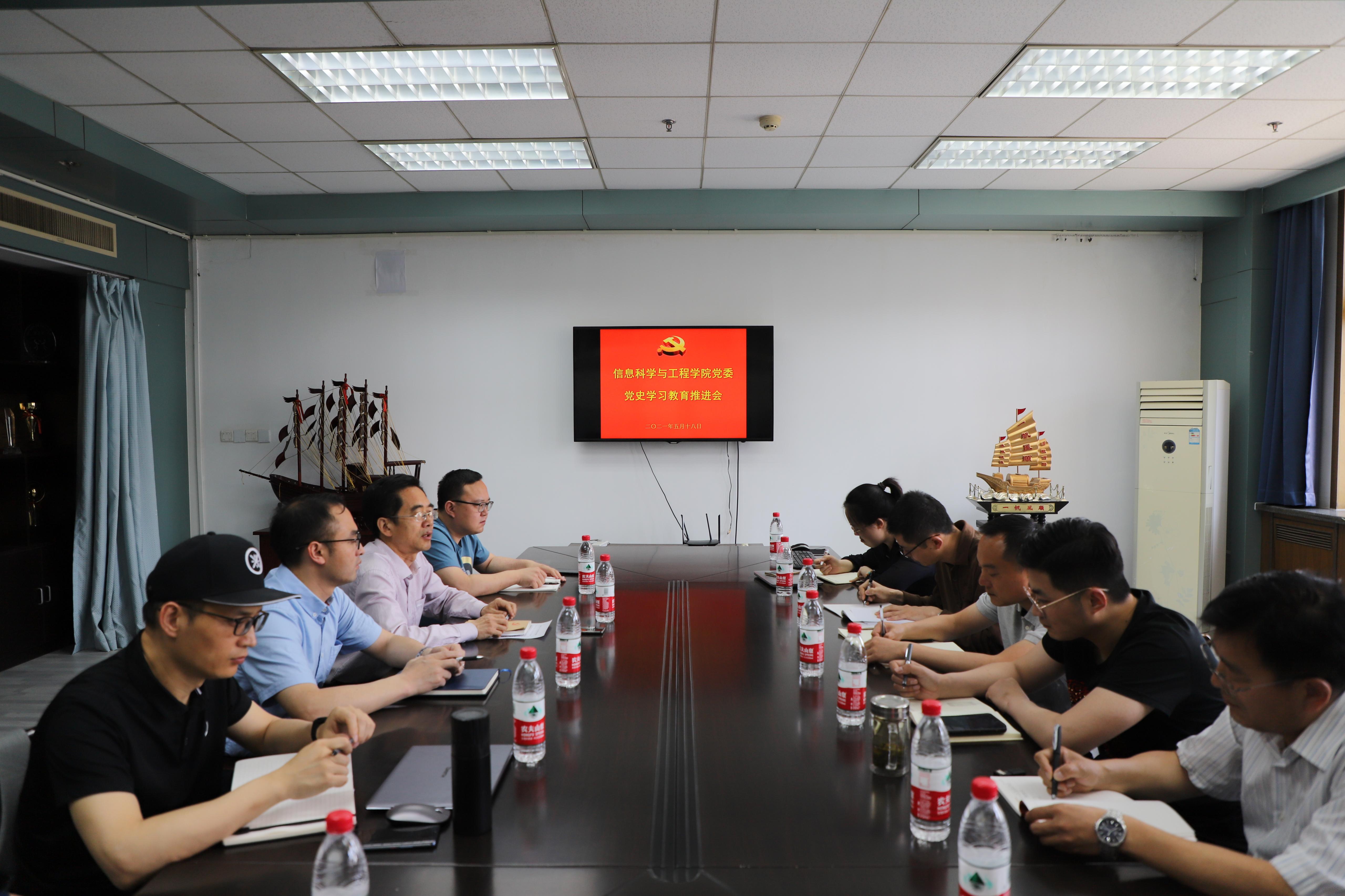 召开党史学习教育推进会,对学院党史学习教育再动员、再部署、再落实,学院党政领导班子、教工党支部书记以及学生党支部书记参加会议,会议由学院党委书记邱鲁军主持。
