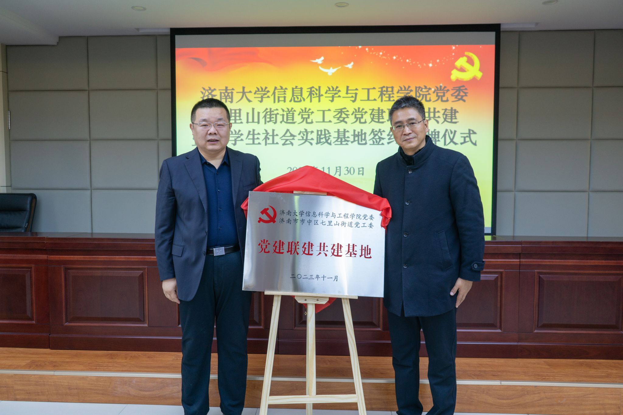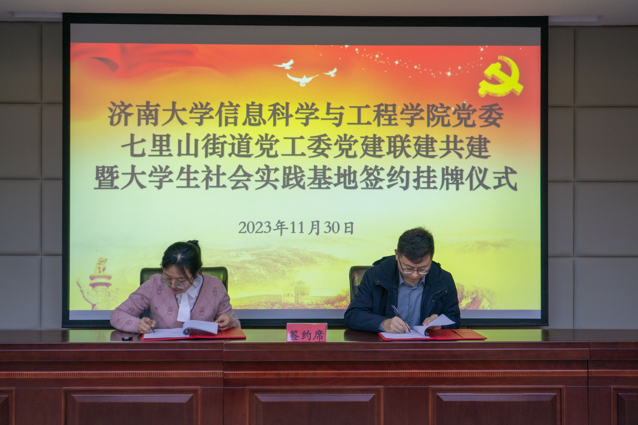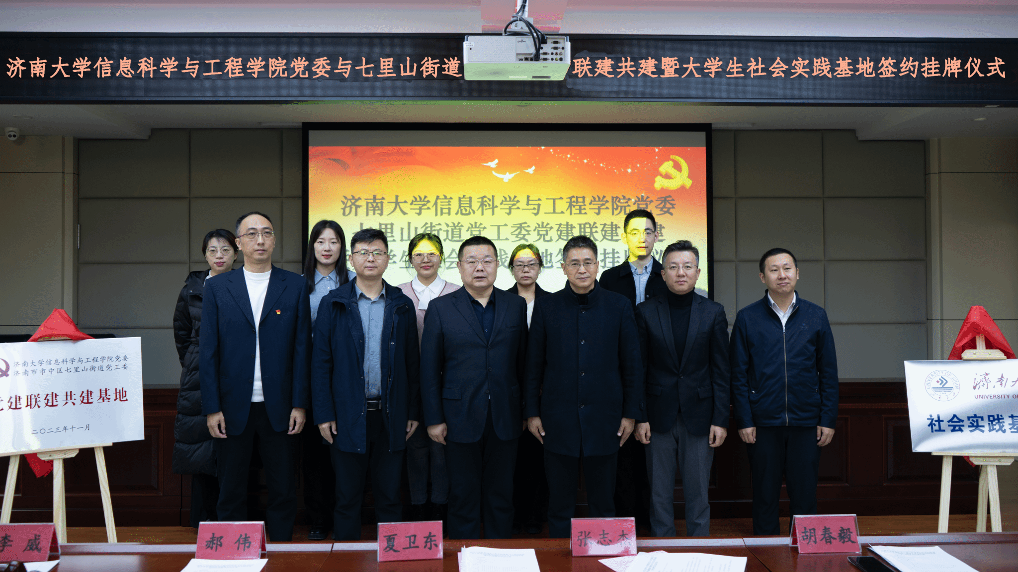 与济南市市中区七里山街道党工委党建联建共建暨大学生社会实践基地签约挂牌仪式在七里山街道党群服务中心举行,共青团济南市市中区委书记党淼,济南市市中区七里山街道党工委书记张志杰,党工委副书记李威,党工委委员、办事处副主任隗娜,色戒