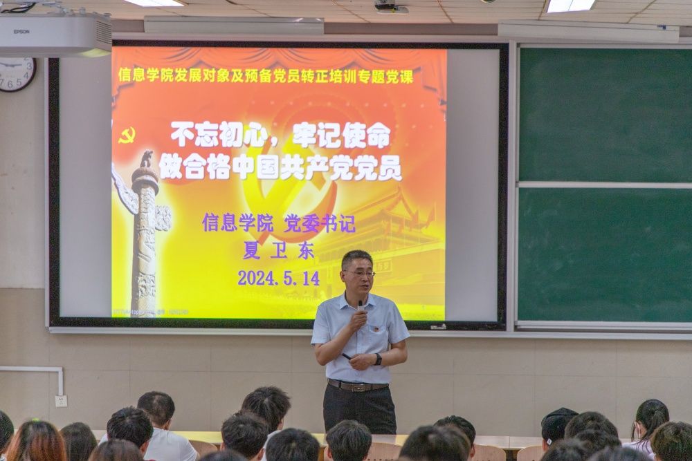 开展本学期党组织发展对象和预备党员转正培训专题党课。学院党委书记夏卫东、党委副书记郝伟分专题为大家讲授党课,本学期党组织发展对象和即将转正的预备党员近200人参加了培训。