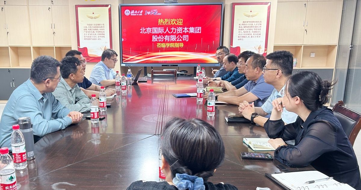 董俊杰首先对北京国际人力资本集团股份有限公司一行的到来表示热烈欢迎,并围绕学校发展规划、办学特色、专业建设以及2024届毕业生就业情况进行了详细介绍。他表示,希望能以此次座谈会为契机,双方立足于国家战略,瞄准立德树人战略目标,创新联合培养人才模式,促使双方合作交流,补强校企合作链条的各个环节,实现校企共赢,促进毕业生高质量就业。