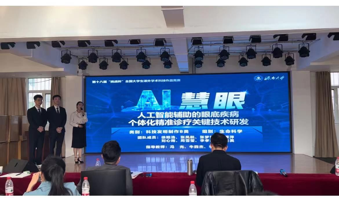 学生团队在比赛中再创佳绩,凭借《人工智能辅助的眼底疾病个体化精准诊疗关键技术研发》项目国家级二等奖,创下学院参赛历史最好成绩。