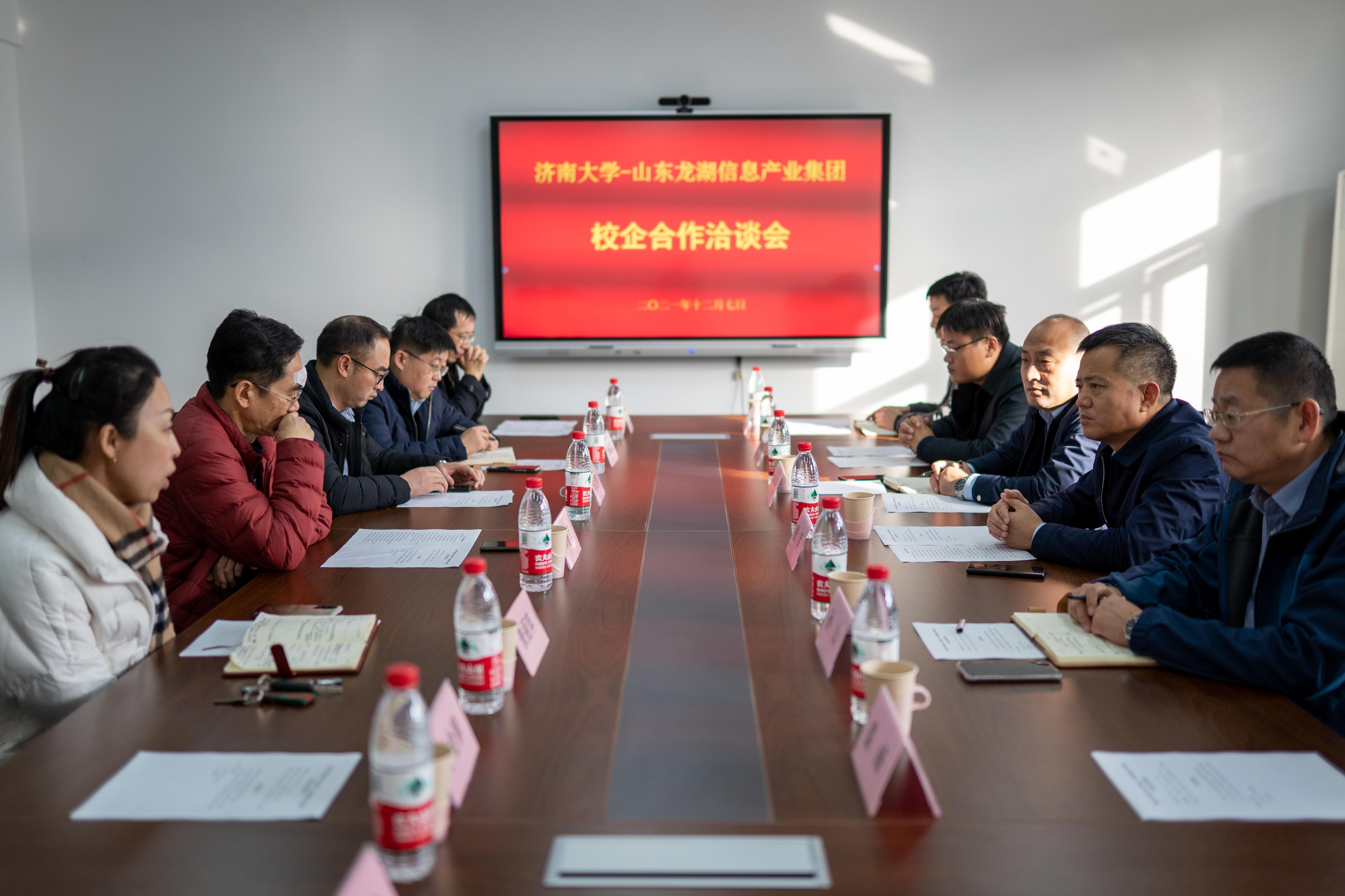 -山东龙湖信息产业集团校企合作洽谈在第12号教学楼704会议室举行。山东龙湖信息产业集团党委书记、董事长张军,山东龙湖信息产业集团副总经理孙山,色戒